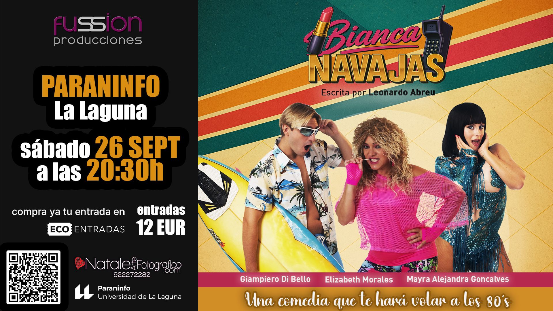 Fussion Teatro es una compañía teatral canaria que produce y representa obras de teatro para adultos y niños con un enfoque en el estilo comercial y la comedia. En nuestros más de10 años de existencia, hemos creado cerca de 20 producciones con un mensaje social en cada una de nuestras representaciones. Nos hemos presentado en todas las Islas Canarias, consolidándonos como una de las compañías más estables y con propuestas innovadoras de producción.